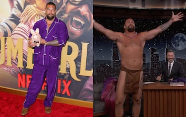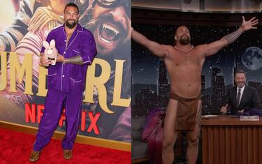 Jason Momoa: red carpet in pigiama, poi si spoglia da Jimmy Kimmel