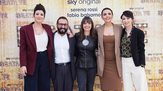 La sceneggiatrice Carlotta Corrradi, Fabio Balsamo, la regista Paola Randi, Serena Rossi e la sceneggiatrice Lisa Nur Sultan al photocall di Beata te