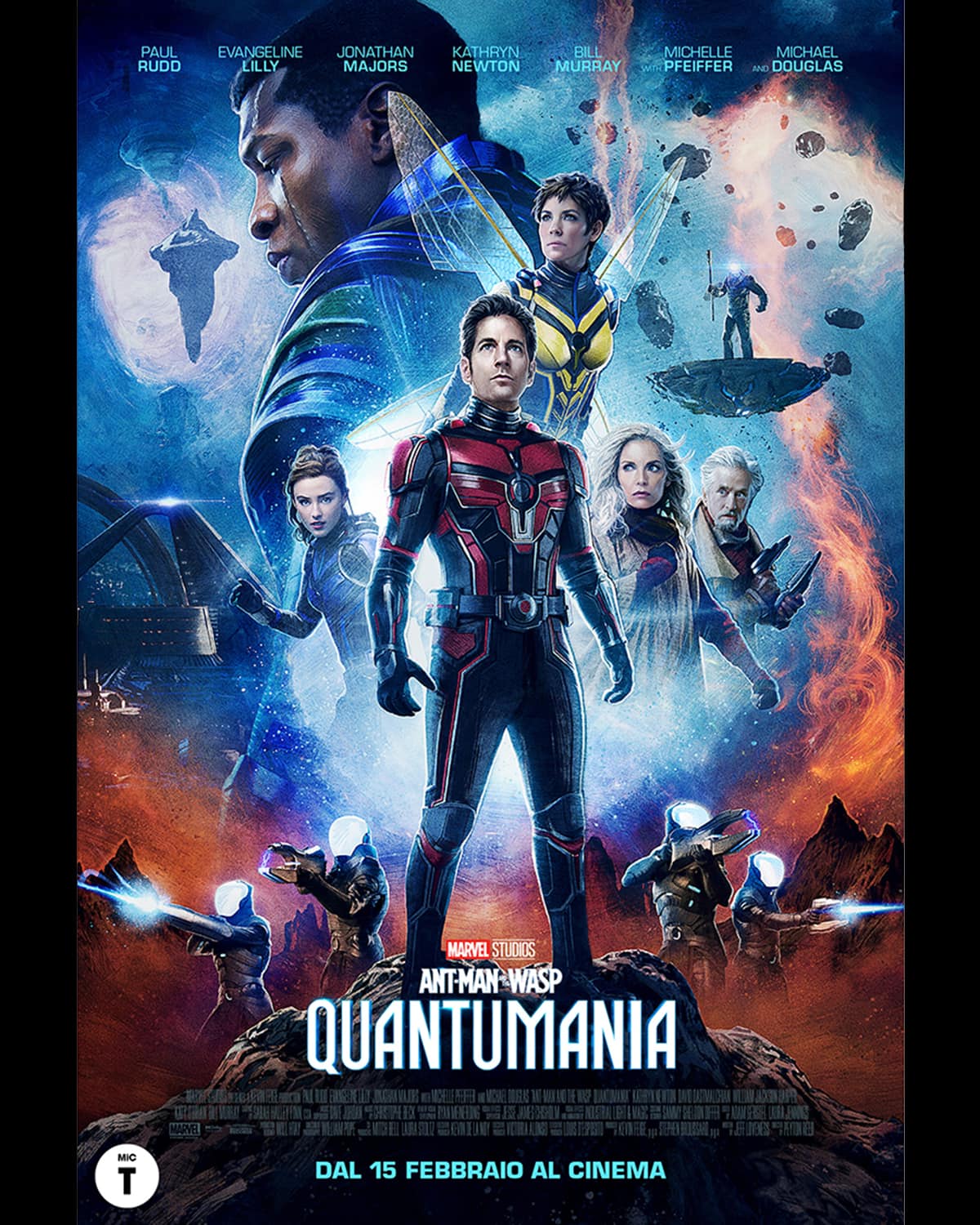 Cinema ©DisneyArriva al cinema in Italia a partire dal 15 febbraio, il cinecomic che inaugura la fase 5 del Marvel Cinematic Universe. Una subatomica avventura psichedelica, tra conquistatori, alieni e affetti familiari. Con Rudd, Evangeline Lilly, Jonathan Majors, Michelle Pfeiffer, Michael Douglas, Kathryn Newton e Bill Murray