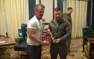 Guerra Ucraina, Sean Penn a Kiev dona il suo Oscar a Zelensky