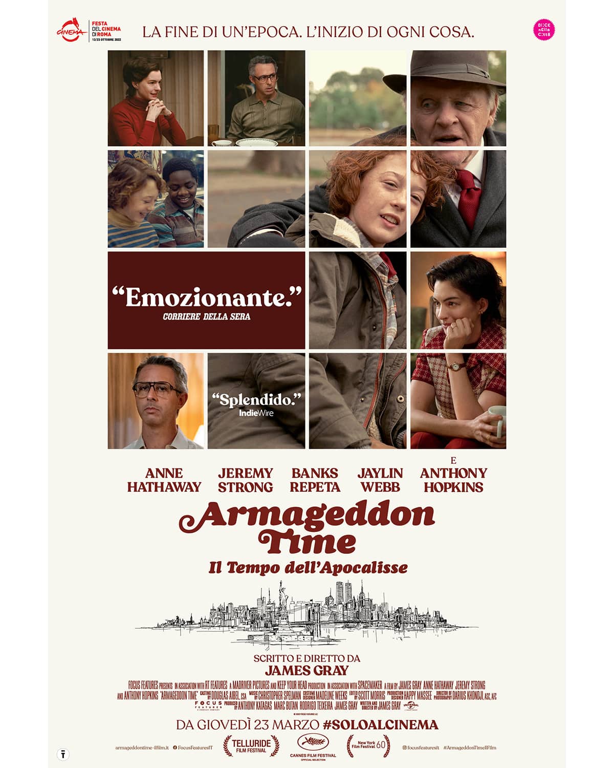 Dopo aver girato cinque film drammatici e intimi nella sua città d’origine, New York, il regista James Gray si è mosso su nuovi terreni con un’avventura incentrata sulle esplorazioni come Civiltà perduta - The Lost City of Z, ambientata in Amazzonia, e il racconto fantascientifico Ad Astra. Con Armageddon Time, Gray ha deciso non solo di fare ritorno a New York City, ma addirittura di ripiombare nella villetta bifamiliare di Flushing, nel Queens dove è cresciuto. “Sono stato nella giungla e ho potuto ricreare lo spazio infinito, e sono onorato di aver potuto fare queste esperienze,” commenta Gray. “A un certo punto sono però arrivato alla conclusione che New York faccia parte di me. Se riesci a esprimerlo in maniera diretta e onesta, è senza dubbio la cosa migliore che potrai fare. Il mio primo pensiero è stato di tornare nuovamente a casa, provando a farlo nella maniera più personale possibile”.