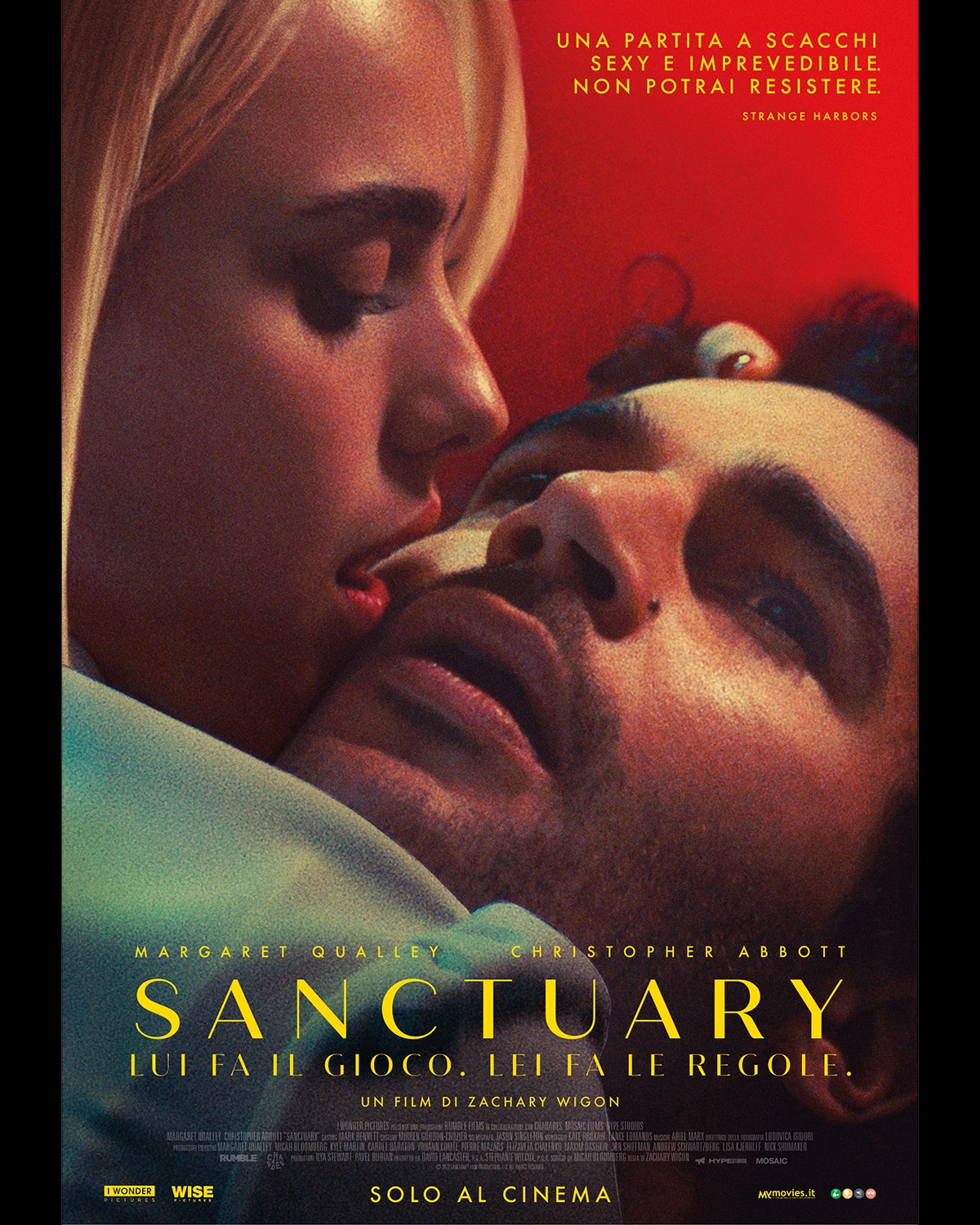 Una coppia di star del futuro, Margaret Qualley (C’era unavolta a…Hollywood) e Christopher Abbott (Comma 22, Possessor) sono i protagonisti di Sanctuary, un torbido gioco di sesso, potere e controllo..Zachary Wigon (The Heart Machine), regista acclamato dalla critica, firma questo thriller che arriverà nelle sale cinematografiche italiane dal 25 maggio, distribuito da I Wonder Pictures