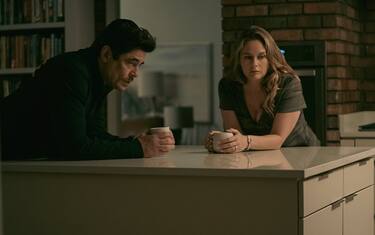 Benicio del Toro nella parte del protagonista Tom Nichols in Reptile. Cr. Kyle Kaplan/Netflix © 2023