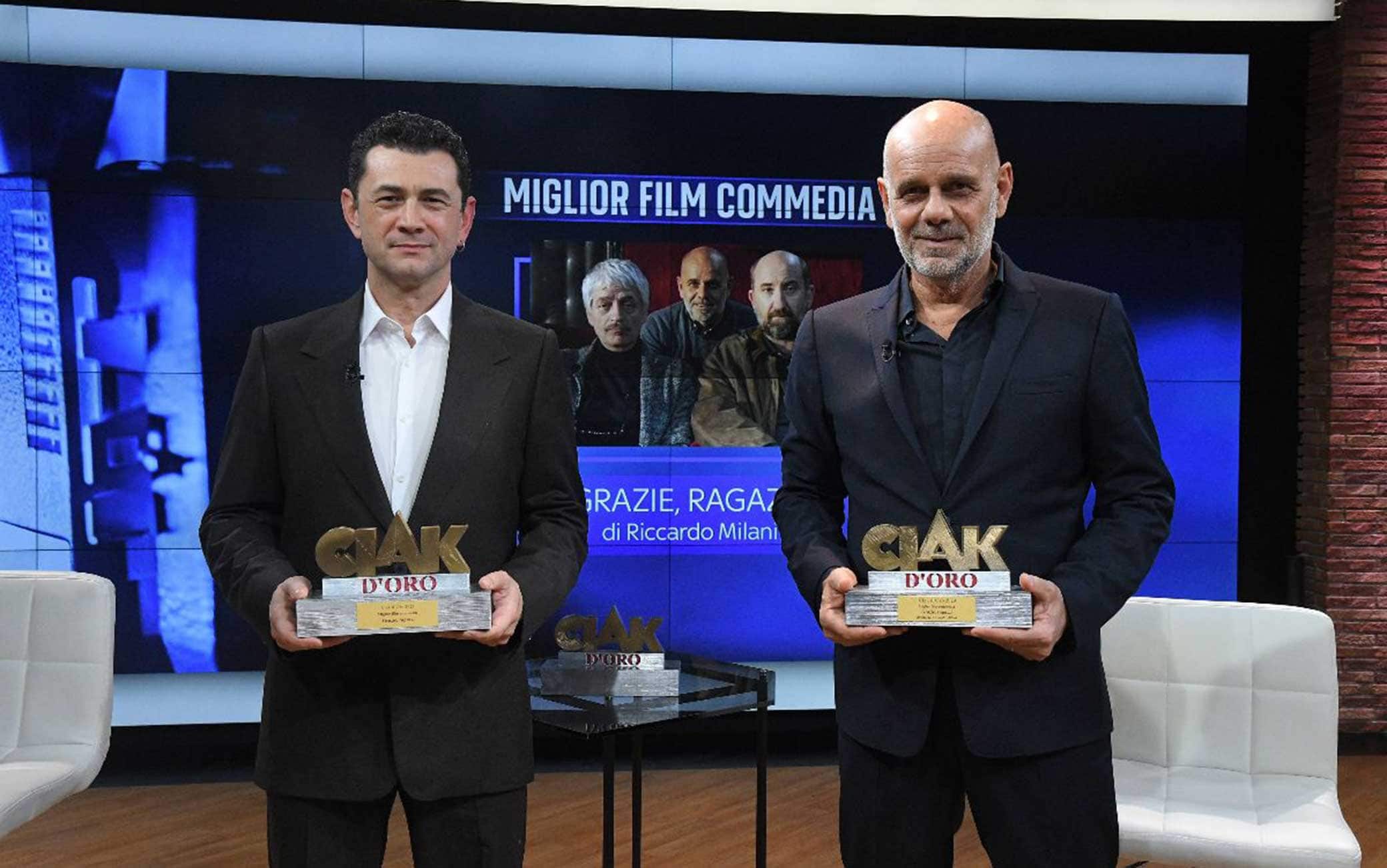 Nelle nove categorie a votazione popolare hanno vinto le storie vere tratte dalla vita quotidiana e ci sono tanti volti nuovi: come miglior film drammatico è stato scelto Mia, l’intenso film di Ivano De Matteo su un drammatico caso di plagio ai danni di una quindicenne: “Mia sta girando per le scuole – ha detto il regista alla serata dei Ciak d’oro – e tanti genitori ringraziano mia moglie Valentina Ferlan e me per averlo scritto e realizzato. Siamo genitori anche noi, era un dovere”. La commedia vincitrice è stata Grazie, ragazzi, di Riccardo Milani, storia altrettanto intensa di un gruppo di carcerati trasformati in attori. La miglior regia è andata a Ferzan Ozpetek per Nuovo Olimpo, vicenda di attrazioni fatali e amori non vissuti davvero nell’Italia degli anni ’70. E il protagonista, Damiano Gavino, è la Rivelazione dell’anno, nella sezione curata con Daniele Giannazzo e Ciak Generation, grazie a un plebiscito (“non mi aspettavo tanti voti – ha detto nella serata dei Ciak d’oro – ma essere diretti da Ozpetek è straordinario.) Tra le attrici ha primeggiato Linda Caridi, sorprendente protagonista femminile de L’ultima notte di Amore, il thriller della porta accanto diretto da Andrea Di Stefano che ha ribaltato la percezione di cosa convinca davvero il pubblico a uscire per andare al cinema. Miglior attore è per distacco Michele Riondino, eletto anche Miglior regista esordiente, per il suo Palazzina Laf, storia di un sopruso degli anni ’70 (“una storia di ieri per riflettere sulla drammatica situazione di oggi”) nell’allora Ilva di Taranto, ferita sempre aperta nella coscienza del Paese: “E’ assurdo - ha detto alla serata dei Ciak d’oro – che la gente della mia Taranto sia costretta a scegliere tra il diritto al lavoro e quello alla salute. Li vogliamo entrambi rispettati”. Ed è scritta e cantata da un tarantino, Diodato, per Palazzina Laf, anche La mia terra, il brano che ha dominato la categoria Migliore canzone originale. Migliore locandina per il cinema è stata quella di C’è ancora domani.
