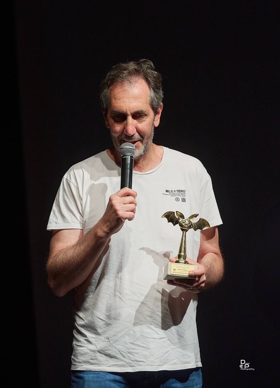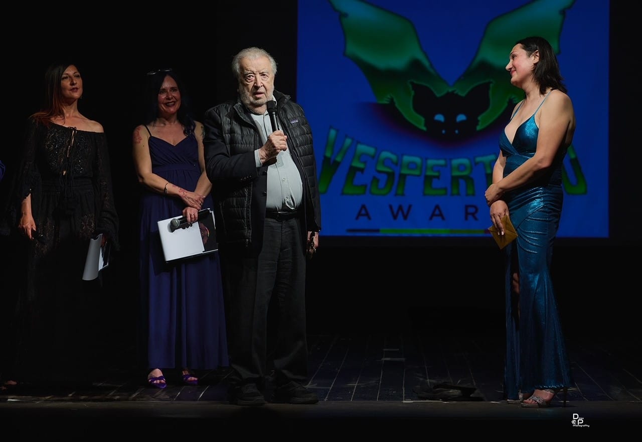 Uno dei momenti più emozionanti della serata e stata la consegna del premio intitolato ad Aldo Lado, istituito quest’anno per omaggiare il grande regista che ci ha lasciato lo scorso 25 novembre. Il cineasta, oltre ad aver firmato pietre miliari come La corta notte delle bambole di vetro e L’ultimo treno della notte è stato uno straordinario protagonista nel 2022 della prima edizione del Vespertilio con la sua contagiosa e travolgente energia e il suo invito a non arrendersi mai. Il riconoscimento è andato a Il paese del melodramma (opera assolutamente da vedere). Sul palco a ritirare il premio, Luca Magri il protagonista del film che ha letto un messaggio di Francesco Barilli, regista del film. Una missiva commovente in cui Barilli ha ricordato le sigarette fumate insieme e soprattutto la sceneggiatura di Chi l’la vista morire scritta proprio con Lado.
