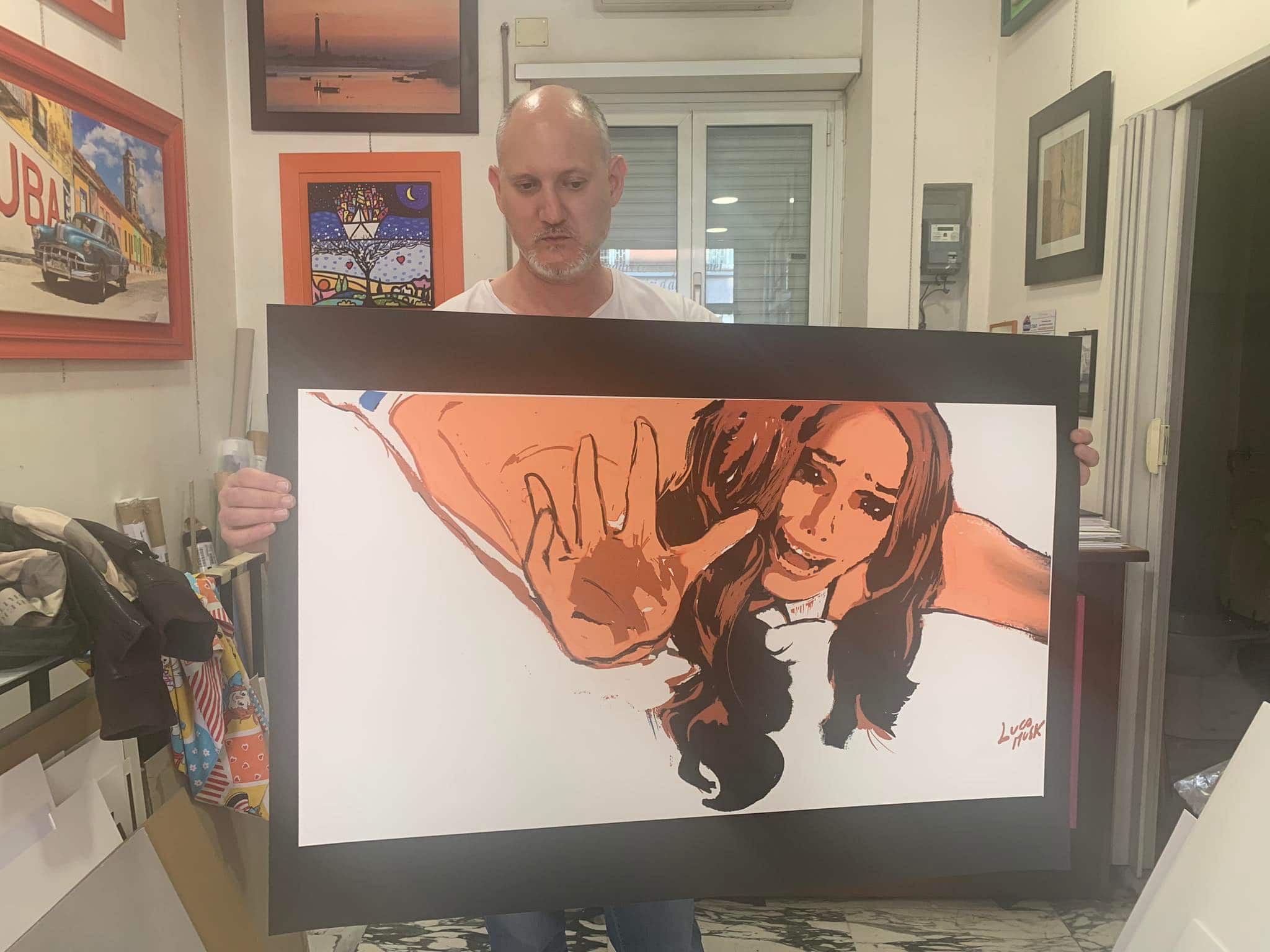 Dal 12 settembre all’11 ottobre 2022, per un mese, gli spazi Amidei e Zavattini della Casa del cinema di Roma hanno fatto da cornice alla personale dell’artista disegnatore Luca Musk, che ha reso omaggio al cinema italiano e internazionale attraverso una ricca selezione di immagini iconiche, accuratamente rielaborate dall’artista grazie alle raffinate tecniche tradizionali quali la china e l’acquerello, base di partenza per approdare al traguardo, visivo e sfaccettato, di una nuova e potente elaborazione digitale (dal comunicato stampa della Casa del Cinema).