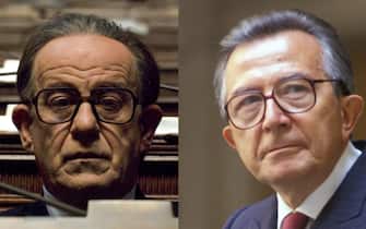 Roberto Herlitzka (a sinistra) ha interpretato Aldo Moro (a destra) in Buongiorno, notte, il film del 2003 diretto da Marco Bellocchio la cui trama è ripresa liberamente dal libro del 1998 Il prigioniero della ex brigatista Anna Laura Braghetti, dove si narra del rapimento, della detenzione e dell'omicidio, da parte delle Brigate Rosse, di Aldo Moro