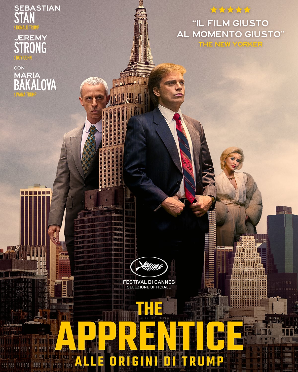 Arriva in prima TV su Sky THE APPRENTICE – ALLE ORIGINI DI TRUMP il film, presentato in anteprima al Festival di Cannes 2024, che racconta l’ascesa di Donald Trump, in onda domenica 19 gennaio alle 21:15 su Sky Cinema Uno, in streaming su NOW e disponibile on demand. Su Sky il film sarà disponibile on demand anche in 4K. Si tratta di un'opera perfetta da vedere prima dell'insediamento del presidente degli Stati Uniti, che avverrà il 20 gennaio. La regia della pellicola è Ali Abbasi, (già autore dell''ottimo Holy Spider) qui al suo primo film in lingua inglese.