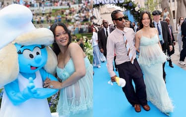 La popstar ha rubato la scena all'anteprima globale del nuovo titolo che combina animazione e live action targato Paramount Pictures che arriverà nelle sale italiane il 27 agosto. La superstar, che nel film ha dato la voce a Puffetta, era raggiante in azzurro, con un look su misura di Chanel che ha messo in risalto il pancione della sua terza gravidanza. Con lei, l'inseparabile compagno A$AP Rocky, anche lui con dettagli del look che omaggiano il tema cromatico del film