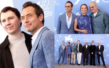 Law è arrivato a Venezia insieme al cast stellare della pellicola di Assayas qui in posa per il photocall ufficiale per la stampa del Festival. Da sinistra, nella foto, dopo l'attore britannico, ci sono: Alicia Vikander, Olivier Assayas, Paul Dano, Jeffrey Wright, Tom Sturridge e Will Keen, tutti attesi per il passaggio sul red carpet nel pomeriggio