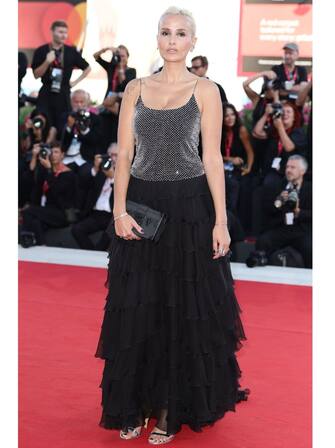 Semplicissima e chic Valérie Donzelli. La regista francese trova la sua formula serale in un completo con top con lo scollo rotondo e la gonna midi. Poi: sandali a contrasto, capelli raccolti in maniera sofisticata e un gioiello al collo per illuminare la notte di Venezia. Voto: 8