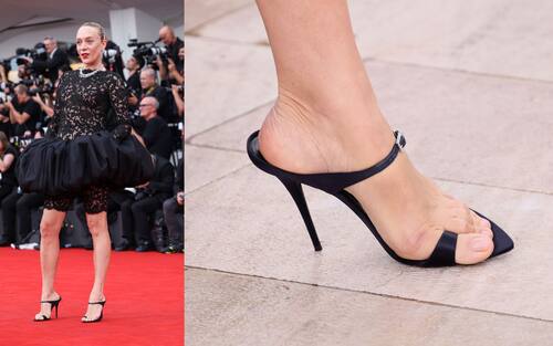I SANDALI CON LA FASCIA SULL'ALLUCE DI CHLOE SEVIGNY - Con un abito così, uno dei pochi corti visti sul red carpet della Mostra del Cinema di Venezia 2025, l'attrice americana, icona della moda, ha scelto un paio di sandali che dovevano catturare necessariamente l'attenzione. Le sue calzature rientrano tra le più belle del Festival. Sandali alti e seducenti, che lasciano il piede nudo o quasi. Il look è di Saint Laurent