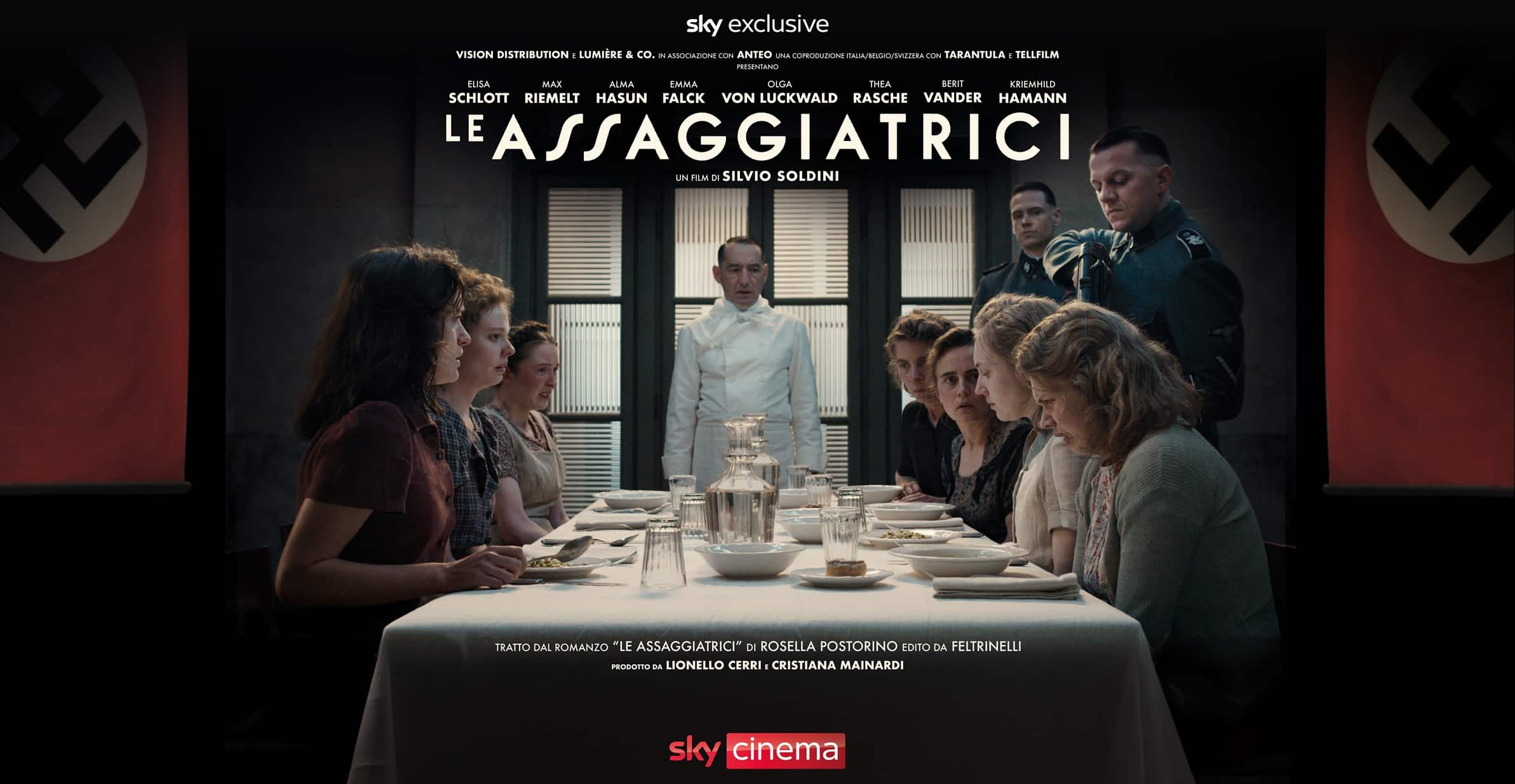 Girato in lingua tedesca e ambientato nella Germania del 1943, LE ASSAGGIATRICI racconta una pagina poco nota della Seconda Guerra Mondiale. Prodotto da Lionello Cerri e Cristiana Mainardi, il film è tratto dal romanzo omonimo vincitore del Premio Campiello di Rosella Postorino (edito da Feltrinelli) ispirato alla storia vera di Margot Wölk, unica sopravvissuta tra le donne costrette ad assaggiare i pasti destinati ad Adolf Hitler. La donna ha rivelato la sua storia soltanto nel 2012, a 95 anni, poco prima di morire. Con uno sguardo empatico e rigoroso, Silvio Soldini costruisce un film corale e intenso, che riflette sul desiderio, la paura e la forza dell’amicizia femminile in tempo di guerra. Da un soggetto di Cristina Comencini, Giulia Calenda e Ilaria Macchia, e una sceneggiatura scritta con Doriana Leondeff, Silvio Soldini e Lucio Ricca, LE ASSAGGIATRICI (FOTO) vede protagonisti Elisa Schlott, Max Riemelt e Alma Hasun.