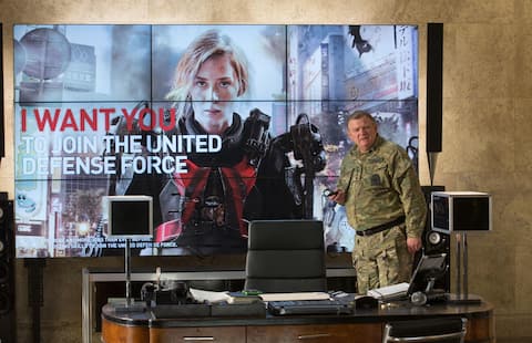 Brendan Gleeson è il Generale Brigham, ufficiale inflessibile e autoritario, che guida l’esercito con determinazione e poca empatia. Rappresenta l’istituzione militare cieca di fronte all’assurdità del conflitto, e il suo scetticismo nei confronti di Cage e Rita diventa un ostacolo ulteriore nella lotta contro i Mimic.