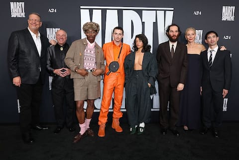 La commedia sportiva Marty Supreme, in uscita nelle sale americane per il giorno di Natale (uscirà nelle sale italiane il 22 gennaio 2026, distribuito da I Wonder Pictures), vede Chalamet interpretare Marty Mauser, un uomo che si allena per diventare un giocatore di ping-pong, un personaggio liberamente ispirato al giocatore professionista di tennis tavolo Marty Reisman. In questa foto, vediamo Chalamet con tutto il cast del film e il regista Josh Safdie.