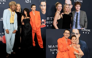 La marcia di Marty Supreme per l'uscita nelle sale cinematografiche americane fissata per il gioro di Natale passa per una anteprima newyorkese le cui immagini sono diventate virali, per la presenza delle star della pellicola al completo e dei loro invitati speciali: mamme, figli, mogli. In questo scatto, i volti principali del biopic di Josh Safdie atteso in Italia il 22 gennaio: Tyler The Creator, Gwyneth Paltrow, Odessa A'zion e Timothée Chalamet.