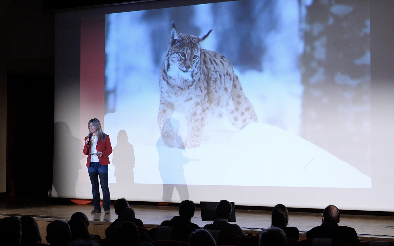 Ad accogliere il pubblico nella hall del cinema, un esemplare tassidermizzato di lince, simbolo del ritorno del predatore nel territorio valdostano. L’allestimento multimediale ha proposto contenuti informativi e video di fototrappole sugli avvistamenti in Valle d’Aosta.