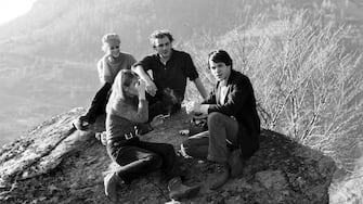 Casteldelfino (Cuneo), 30 gennaio 1967: Carla Gravina, Dominique Boschero, Gian Maria Volonté e Claudio Camaso (Claudio Volonté) in vacanza in Val Varaita dove i due fratelli comprarono una casa