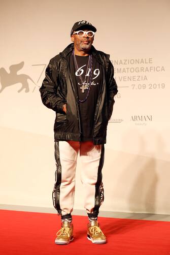 Spike Lee mixa il suo stile super sporty e da rapper sul red carpet del film "American Skin”.