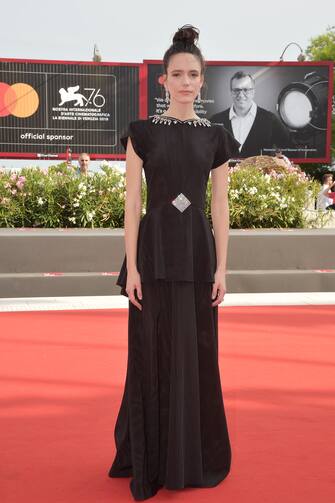 Stacy Martin con un abito lungo total black firmato Gucci per la première del film "Ji Yuan Tai Qi Hao" (No.7 Cherry Lane).