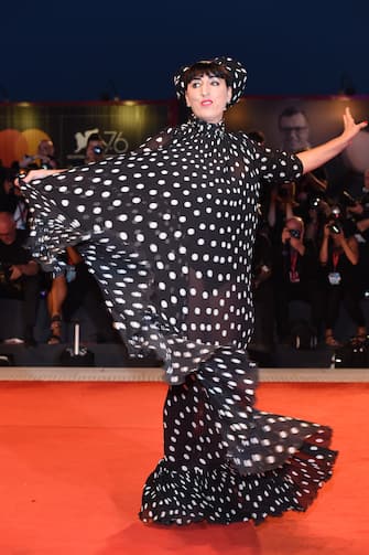 Rossy de Palma con un abito a pois di Juana Martino sul red carpet dell'evento Filming in Italy.