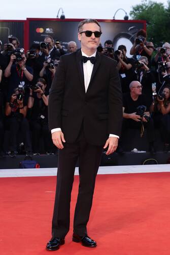 Joaquin Phoenix con un completo di Stella McCartney sul red carpet del film “Joker”.