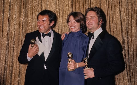 UNA GESTAZIONE COMPLICATA – Kirk Douglas incontrò Forman (cecoslovacco) durante un viaggio a Praga e gli chiese di dirigere il film, ma l’invasione della Cecoslovacchia da parte dei Paesi del Patto di Varsavia non lo permise. Anni dopo, fu Michael Douglas – figlio di Kirk – a prendere in mano il progetto. Dopo qualche cambio di regista (prima Richard Rush, poi Hal Ashby), la proposta torna a Forman, che nel frattempo era riuscito ad arrivare negli Stati Uniti. Nonostante uno stato mentale precario, il regista accettò. In foto: Douglas, Forman e Fletcher.