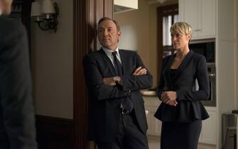 In House of cards Robin Wright veste i panni di Claire Underwood, la moglie del politico statunitense Frank Underwood interpretato da Kevin Spacey