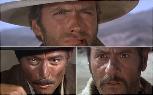 I TRE PROTAGONISTI - Eastwood riprende i panni dell’uomo senza nome, in questo caso ribattezzato “il Biondo”, affiancato da uno straordinario Eli Wallach (Tuco Ramírez) che regala anche una nota umoristica e Lee Van Cleef (Sentenza)