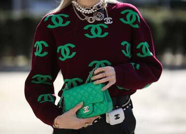 Leonie Hanne sceglie la mini bag e pull con logo Chanel verde