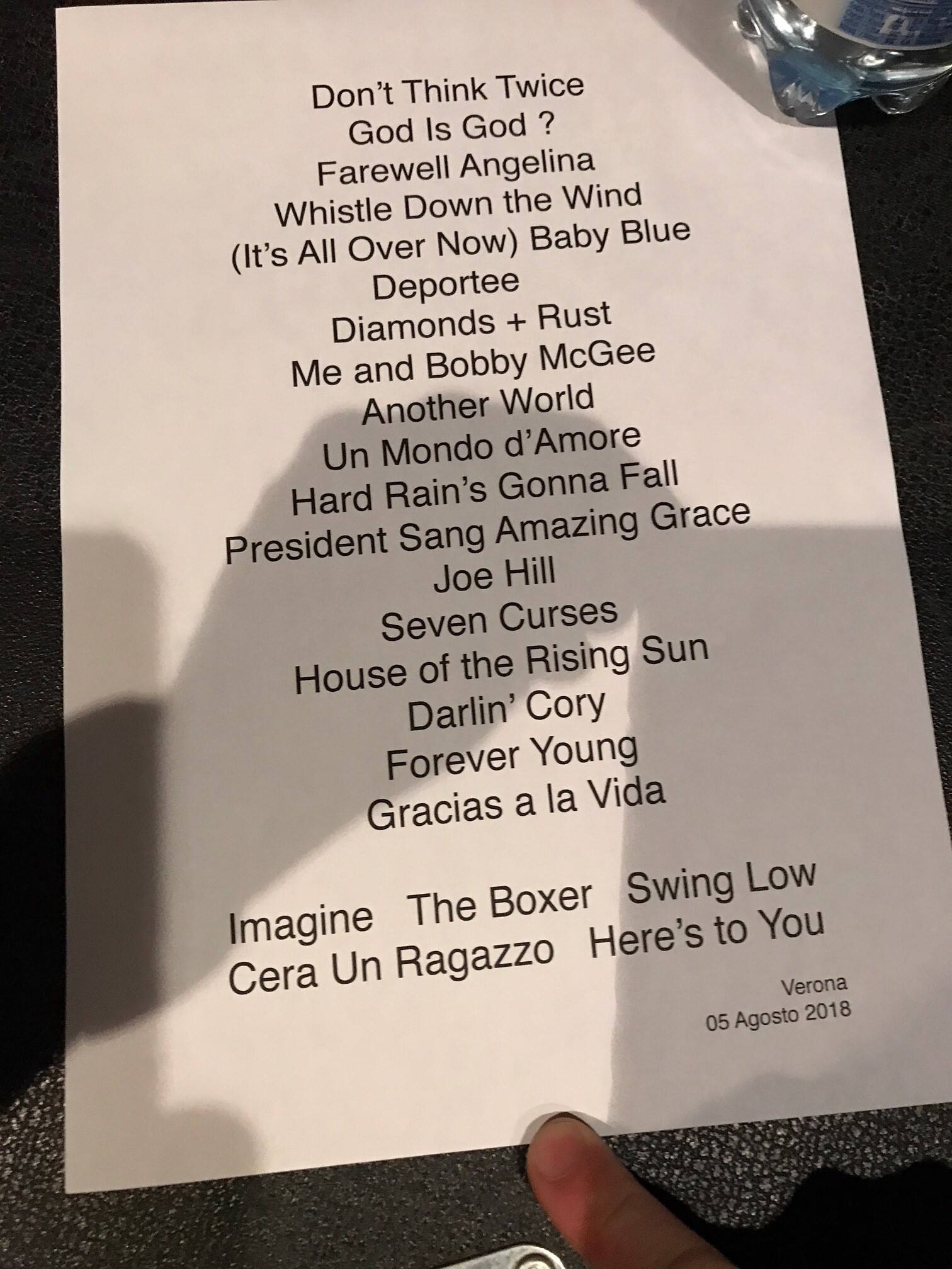Quella che vi abbiamo raccontato è la prima data italiana del Fare Thee Well Tour, il tour di addio dell'artista americana. Questa sera, 6 agosto, sarà alle Terme di Caracalla a Roma , l'8 in Piazza Castello a Udine e il 9 nel Cortile dell'Agenzia di Pollenzo. La abbiamo poi salutata, nel camerino che la ha ospitata al Teatro Romano, e abbiamo trovano una signora che infonde serenità. Lei che è stata sulle barricate, che con Bob Dylan e gli artisti della Beat Generation ha contribuito a costruire, con la sola forza delle canzoni, un sogno che si chiama un mondo migliore. C'è, ci sono riusciti? Un tema dibattuto, c'è chi dice di sì, chi di no, chi che ci hanno venduto una illusione. Resta il fatto che Joan Baez non ha mai smesso di cantare e combattere. Oggi più che mai, circondati come siamo dall'ombra del totalitarismo. C'è chi i muri, magari al confine col Messico, prova a costruirli e chi li butta giù con le corde della chitarra. Gracias a Joan.
