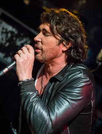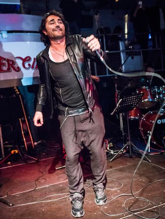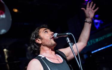 Giovanni Scialpi, in arte Shalpy, durante un suo concerto con canotta smanicata