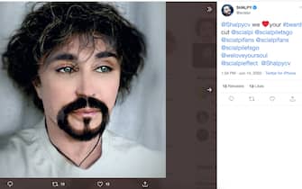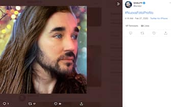Capelli lunghi, barba con mosca e baffi in una foto di Shalpy postata sul suo profilo di Twitter.