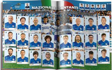 Per celebrare i 60 anni dal suo lancio, l’album Calciatori Panini omaggia la Nazionale Cantanti con due pagine dedicate a 28 artisti. Sono 22 le figurine presenti a cui si aggiungono l’immagine di Marco Masini, direttore tecnico della squadra e di altri 5 artisti in rosa. La Nazionale Cantanti festeggia quest’anno il suo 40° anniversario
