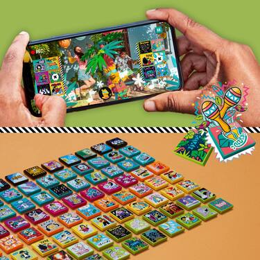 - Prepara il palco: dal parco alla cameretta, da giardini a modellini costruiti con i mattoncini, i video musicali di LEGO® VIDYO™ possono prendere vita ovunque. La tua location viene scannerizzata e comincia lo spettacolo!