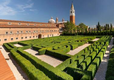 Il Labirinto Borges è nato nel 2011, realizzato dalla Fondazione Giorgio Cini su progetto dell’architetto inglese Randoll Coate e per volere della vedova Borges, Maria Kodama, che desiderava ricordare l’amore del marito per Venezia. Il Labirinto è ispirato al racconto di Jorge Luis Borges, Il giardino dei sentieri che si biforcano ed è composto da più di tremila piante di bosso alte novanta centimetri. Si trova alle spalle dei due chiostri della Fondazione - il primo progettato da Andrea Palladio e il secondo disegnato dai fratelli Buora – e si snoda per un chilometro. Il Labirinto è uno dei luoghi dell’Isola di San Giorgio che esercita maggiore fascino sui visitatori, e in occasione del decennale della sua creazione e dei 35 anni dalla scomparsa di Borges, apre per la prima volta alla visita offrendo la possibilità di percorrerlo interamente. Fino a oggi, infatti, si era potuto ammirare solo dall’alto, dal terrazzo del Centro Branca: un’esperienza comunque imperdibile, perché consente di scoprire tutti simboli che rendono omaggio a Borges. Il Labirinto visto dall’alto si presenta come un libro aperto, costellato da richiami alle opere dello scrittore argentino: un bastone, gli specchi, due clessidre, un enorme punto di domanda, la tigre, il nome Jorge Luis e le iniziali di Maria Kodama. Inoltre le siepi sono disposte in modo da formare il nome Borges, come se fosse idealmente scritto sulle pagine di questo libro. Nonostante la complessità della struttura è pressoché impossibile perdersi: nella vertigine che i labirinti riescono a dare, ci si smarrisce, ci si ritrova, ci si disorienta, e poi, alla fine, si scorge la via d’uscita.