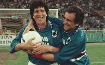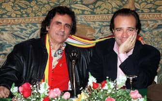 Toni Santagata con Enrico Montesano a una conferenza di presentazione del Derby del cuore