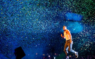 Lo show romano è stato una festa, tra coriandoli, giochi di luci, visual proiettati sui maxischermi e geyser