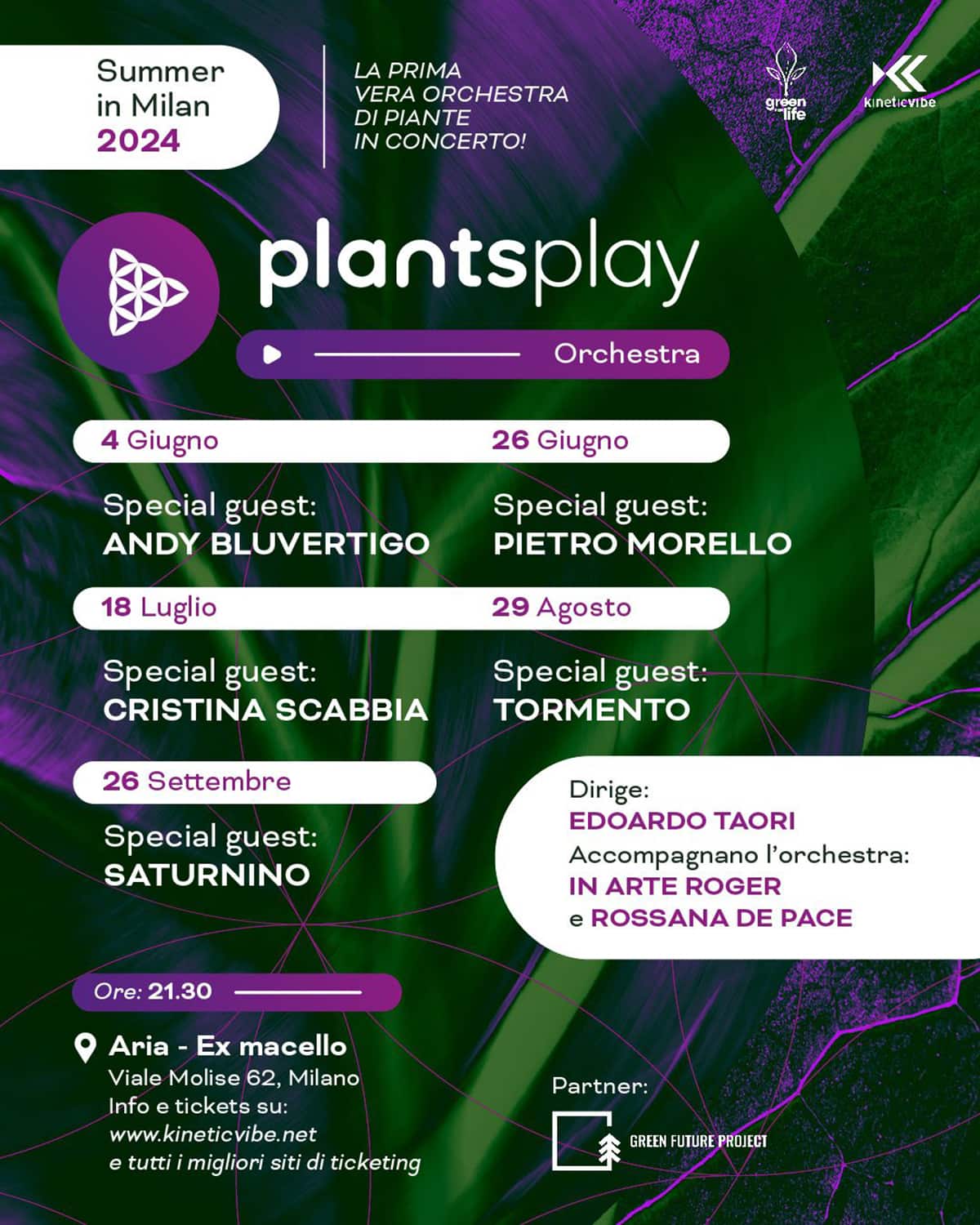 Plants Play Orchestra – Summer in Milano 2024 sono eventi organizzati da Kinetic Vibe in collaborazione con Greenforlife.