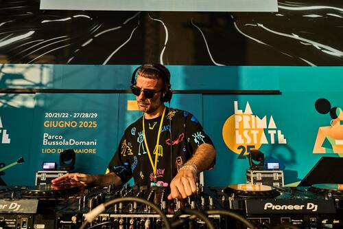 Un'altra immagine di Mario Scalambrin all'opera: il dj e produttore era stato a La Prima Estate anche lo scorso anno, in occasione della serata dedicata al Kama Kama, storico locale della Versilia che ha visto esordi e successi
