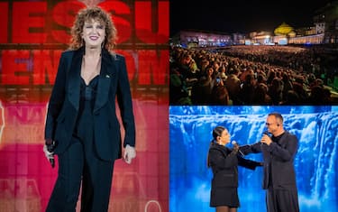 “Oggi per vivere servono occhi e cuore. Occhi per guardare, dove davvero occorre, e cuore per sentire, battere e sentire”, dice l'attrice che pronuncia parole forti che vanno oltre la causa femminile. Lei, che nei giorni della Mostra del Cinema di Venezia è stata in prima linea con gli altri artisti nella giornata delle proteste Pro Pal e a sostegno della Global Sumud Flotilla, aggiunge: “Oggi per vivere servono due cose: vivere per chi muore e battersi per chi non ha cuore. Oggi per campare servono più cose una sveglia per testarci e un'altra per ricordarci che se un bambino piange, piange il mondo intero; che se un bambino soffre, soffre il mondo intero; che se un bambino muore, muore il mondo intero”, mentre si unisce a Paola Turci sul brano la piazza napoletana si alza in piedi. Qualcuno sventola una bandiera della Palestina. Mannoia, che la sfoggia sulla giacca, come spilla, si associa al momento che smuove le coscienze della società civile.