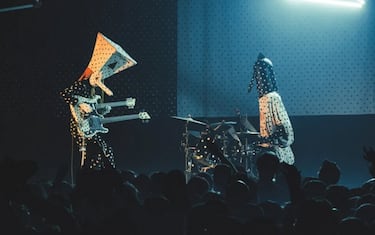 Con milioni di visualizzazioni online e una presenza costante nei feed di IG, il duo targato Quebec divide il pubblico. Tra maschere oversize in cartapesta e abiti a pois bianchi e neri, scopriamo chi si cela dietro alla maschera: ecco cosa sapere su Khn e Klek, nuovi nomi del “math rock” che si autodefiniscono “Orchestra mantra-rock dada pythago-cubista”. Formula che chiarisce la loro posizione: “Non siamo catalogabili”. Il gruppo suonerà in Italia il 31 maggio al Poplar Utopia Festival, al MART di Rovereto