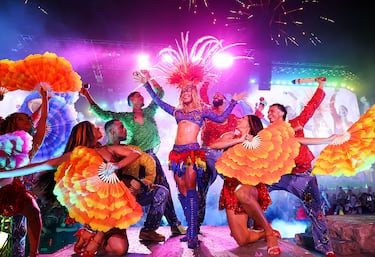 L'orgoglio latino è stato protagonista. È apparsa sul palco con un copricapo di piume e un top e una gonna con i colori della bandiera colombiana per la sua canzone "Tropicoqueta". Ha poi accolto un gruppo mariachi tutto al femminile, che ha illuminato il palco e regalato tanti sorrisi al pubblico.