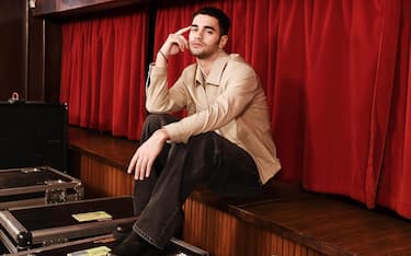 Una foto del cantante durante la serata di Sanremo Giovani 2023 in cui sono stati annunciati i titoli delle trenta canzoni in gara quest’anno alla kermesse canora