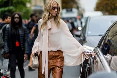 Maxi maglione, pantalone in pelle e sneackers per chi non vuole uscire dalla comforte zone neanche a San Valentino