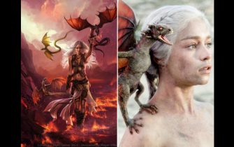 Molto lontana la versione televisiva del mercenario Daario Naharis (interpretato da Ed Skerin e poi da Michiel Huisman): nell'originale letterario ha la barba tinta di blu tagliata a tre cuspidi, i capelli blu, baffi dorati e un grande naso ricurvo