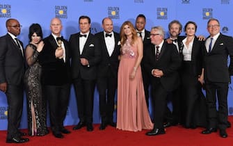 Il cast artistico e tecnico di "The People V. O. J. Simpson: American Crime Story" in posa col Golden Globe vinto nella categoria "Miglior miniserie o film per la tv"