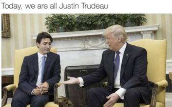 Il 13 febbraio 2017 durante un summit alla casa bianca è stata scattata questa foto che ritrae Donald Trump e il Primo Ministro canadese Justin Trudeau, apertamente contrario alle politiche del nuovo presidente americano. La foto si diffonde immediatamente su Twitter accompagnata da commenti quali “oggi, siamo tutti Justin Trudeau”, “non oso immaginare dove siano state quelle mani”, “sono ancora più piccole dal vivo” (in riferimento alla leggenda delle mani piccole di Trump).