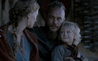 Ragnar con i figli Ubbe e Bjorn. Riconquistata Kattegat, per Lothbrok è tempo di tornare a spingere lo sguardo altrove...verso l'Inghilterra, e oltre - © MGM Television / © History Channel - Tutto su Vikings