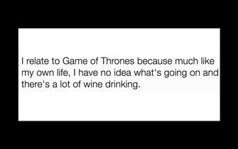 Mi rivedo ne Il Trono di Spade perché è come la mia vita, non ho idea di cosa stia succedendo e c'è un sacco di vino